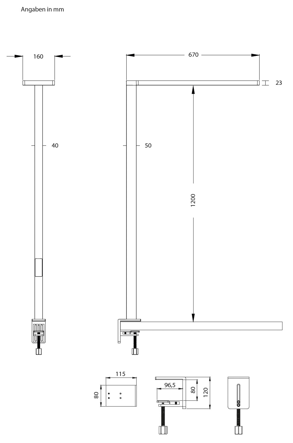 - Universelle Tischklemme max. 7,5 cm Klemmtiefe
